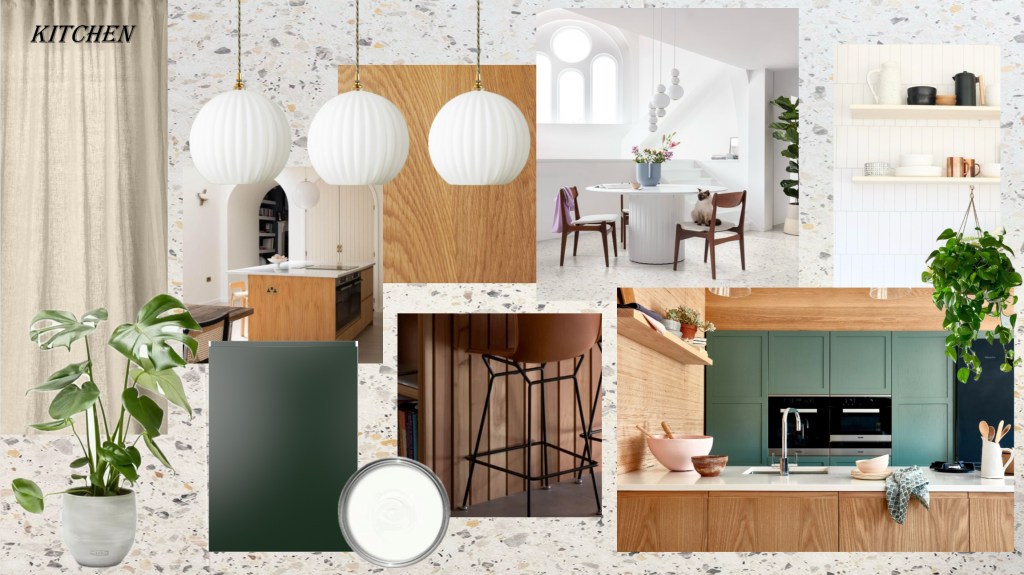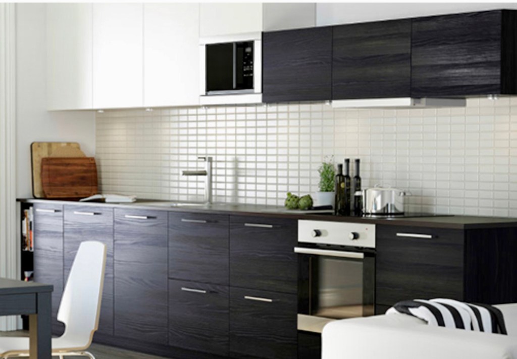 A monocrome Brixton kitchen project. I liked the layout of the existing kitchen and so for ease kept the position of the cooker and hob, sink and fridge. That golden triangle. I like the monocrome look, but with contrasting textures of gloss white wall cabinets, and wood effect black below. I’ve introduced some colour on a pin board out of view, gig passes, travel inspiration and general paraphernalia!