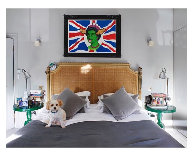 Bedroom inspiration. This quirky bedroom combines comfort and a unique style, plus the cutest dog. I want!
